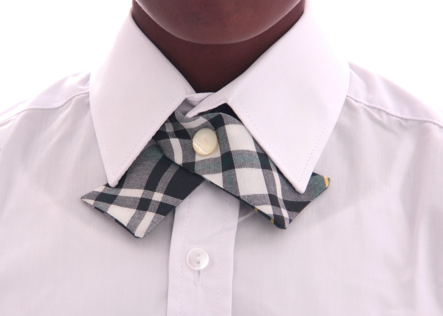 Girls Green and White Tartan Tie